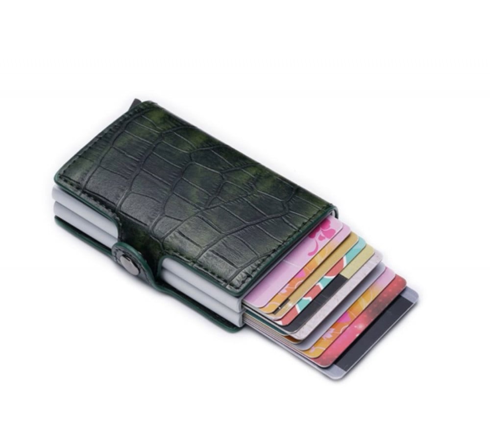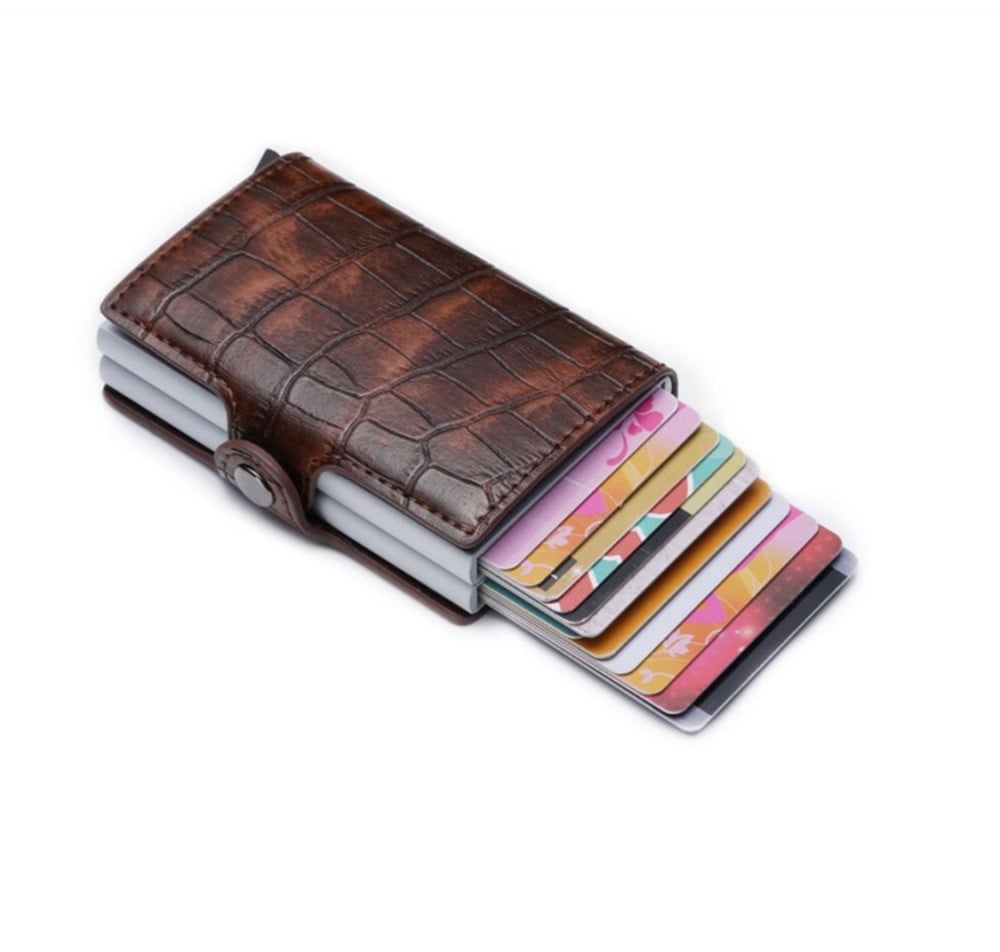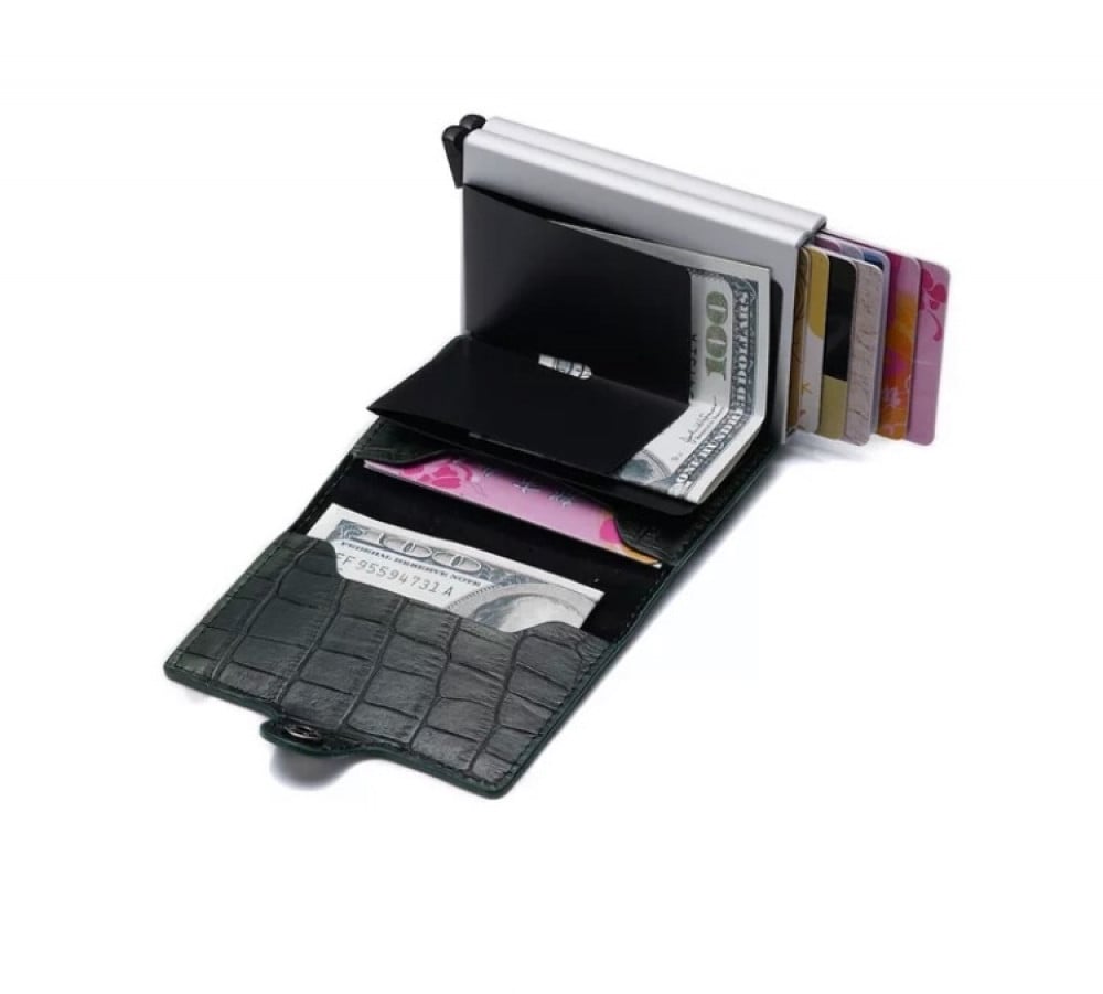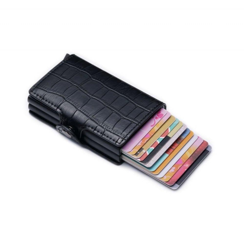 محفظة ذكية بزر لاخراج البطايق تستوعب 8 بطايق مزودة بطقاق لغلق المحفظة